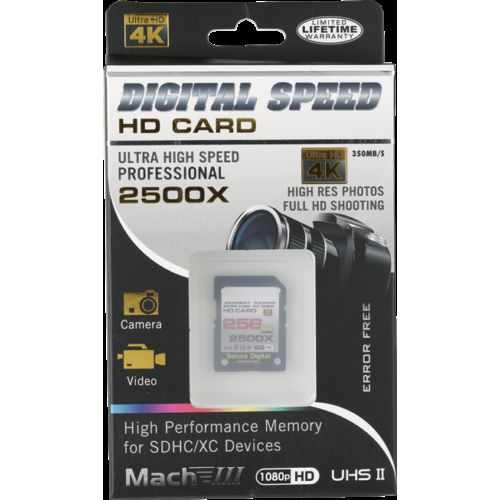 Digital Speed 2500X 256GB Professional High Speed Mach III 350MB/s Error Free (SDHC) HD Memory Card Class 10
